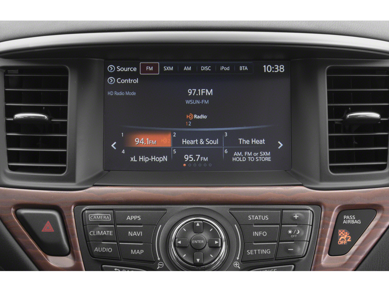 - Radio: AM/FM/CD Audio System w/NissanConnect -inc: 8" color display w/multi-touch control, HD Radio, SiriusXM satellite radio, USB connection ports (2 type A) for iPod interface and other compatible devices, SiriusXM Travel Link (weather, fuel prices, movie listings, stock info and sports), Bluetooth® hands-free phone system and streaming audio via Bluetooth®