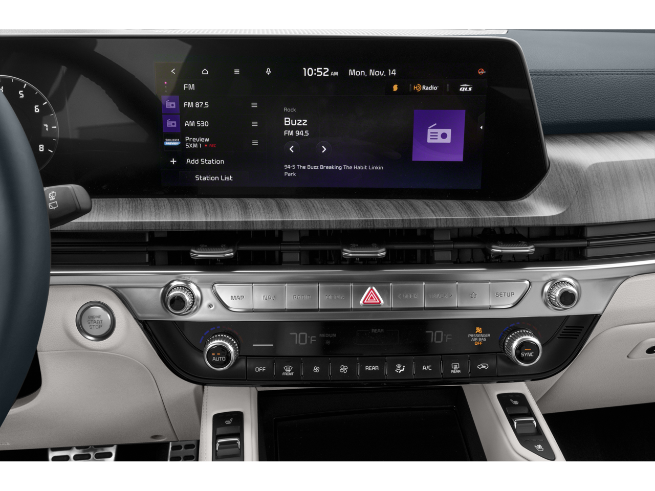 - Radio: AM/FM harman/kardon Premium Audio System -inc: 12.3" audio display unit w/navigation, MAP OTA, driver talk, quiet mode, Android Auto and Apple CarPlay capability, SiriusXM, 10 speakers, QuantumLogic surround sound and Clari-Fi, multi-Bluetooth hands-free w/voice recognition, Telematics Mobile Unit (TMU) and Wi-Fi hotspot